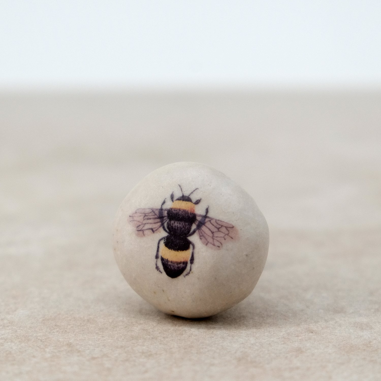 My bee illustration was reproduced as a decal and fired on to the glazed surface.