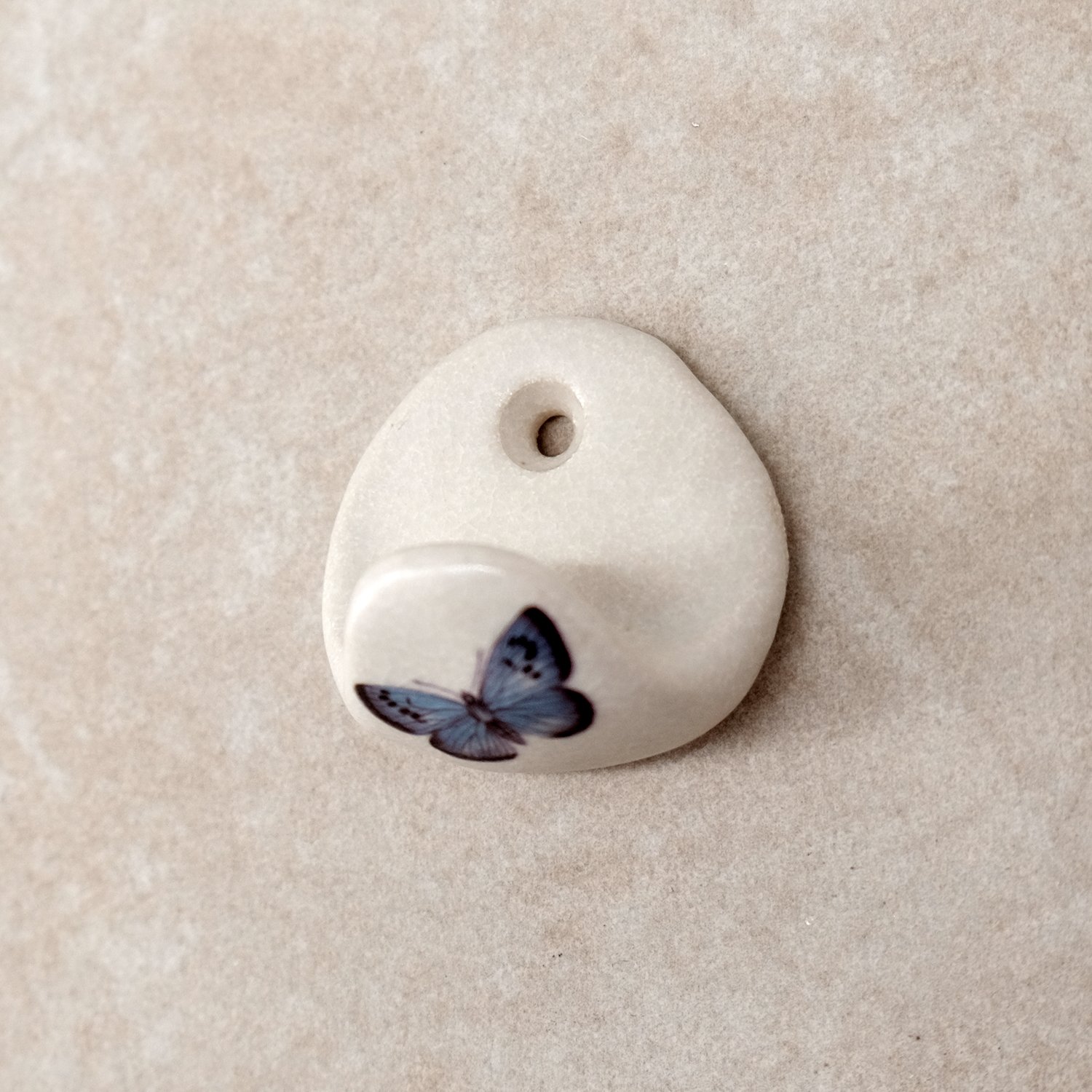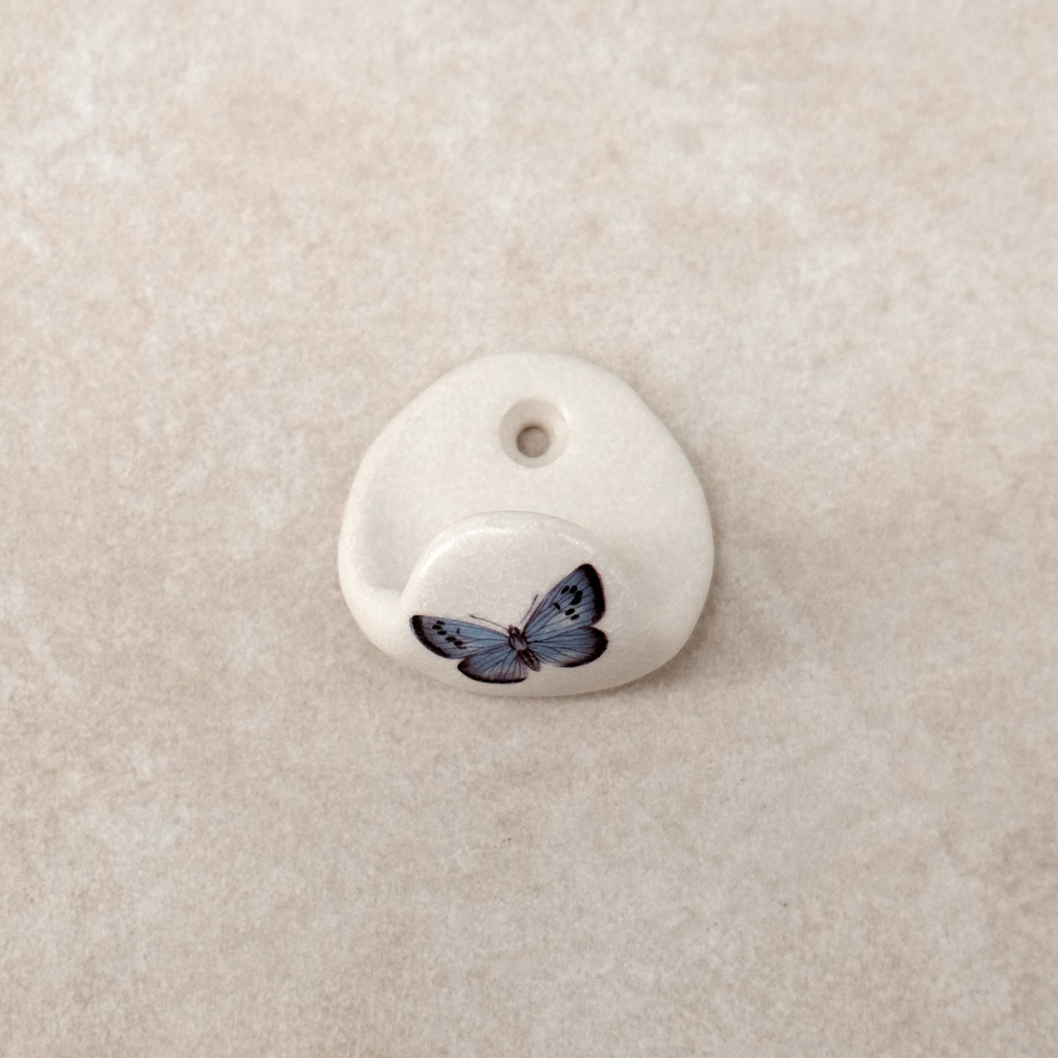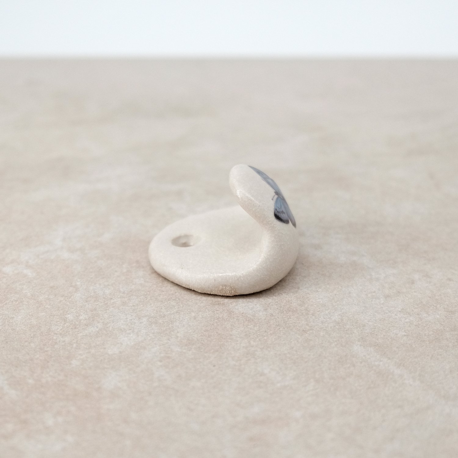 A small ceramic coat hook with an illustrated butterfly print. Simply mounted to the wall with a screw and appropriate fitting for your wall (fittings not supplied). Please see dimensions below.