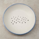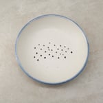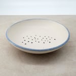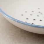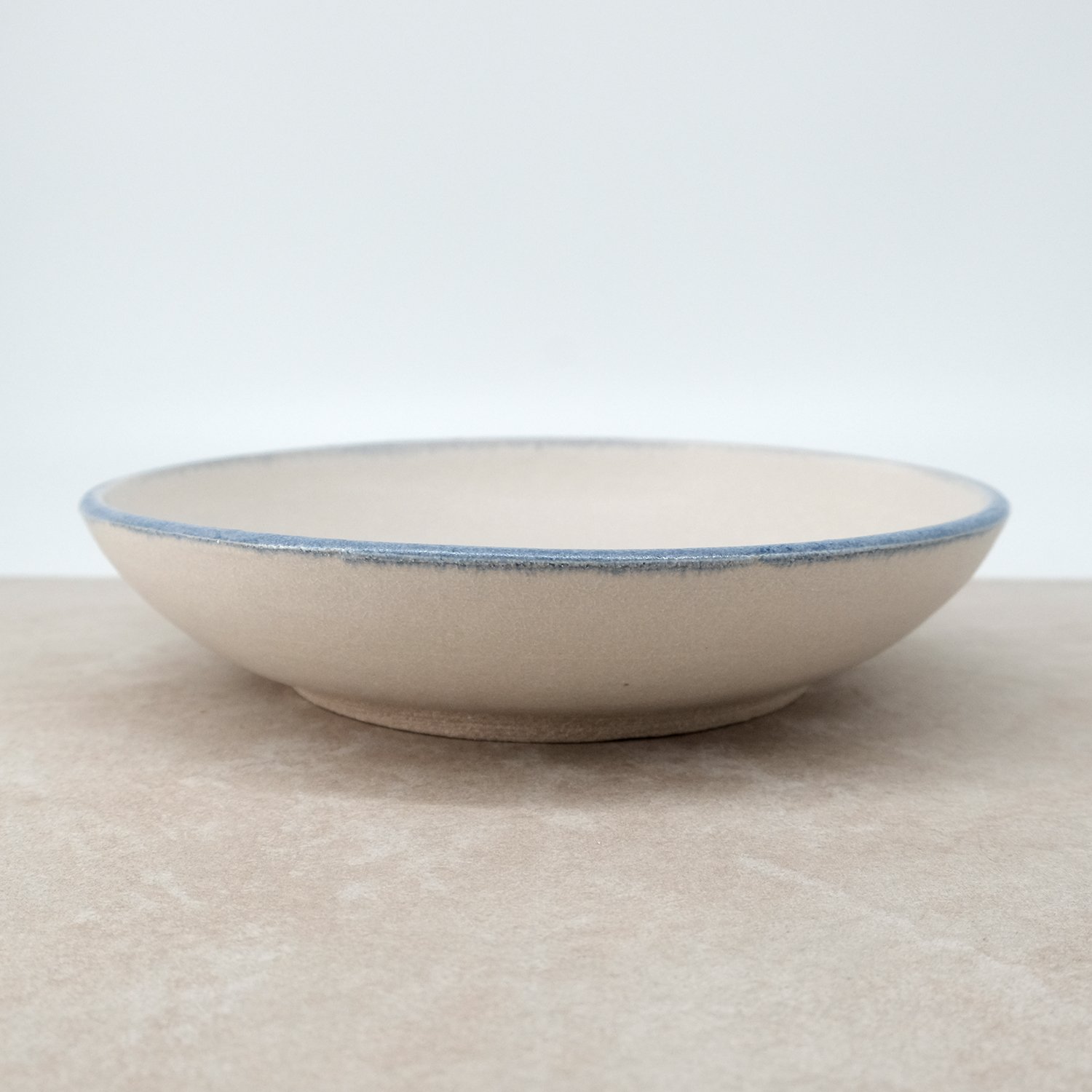 Individually thrown from white stoneware clay and double dipped in white and blue toned glazes.