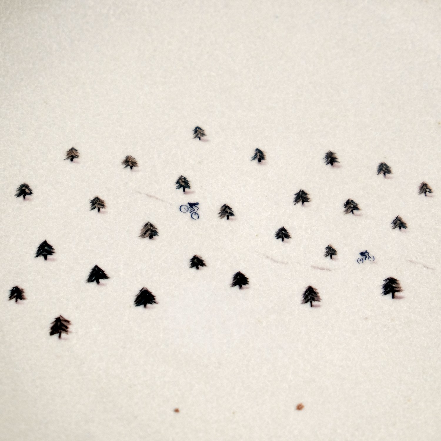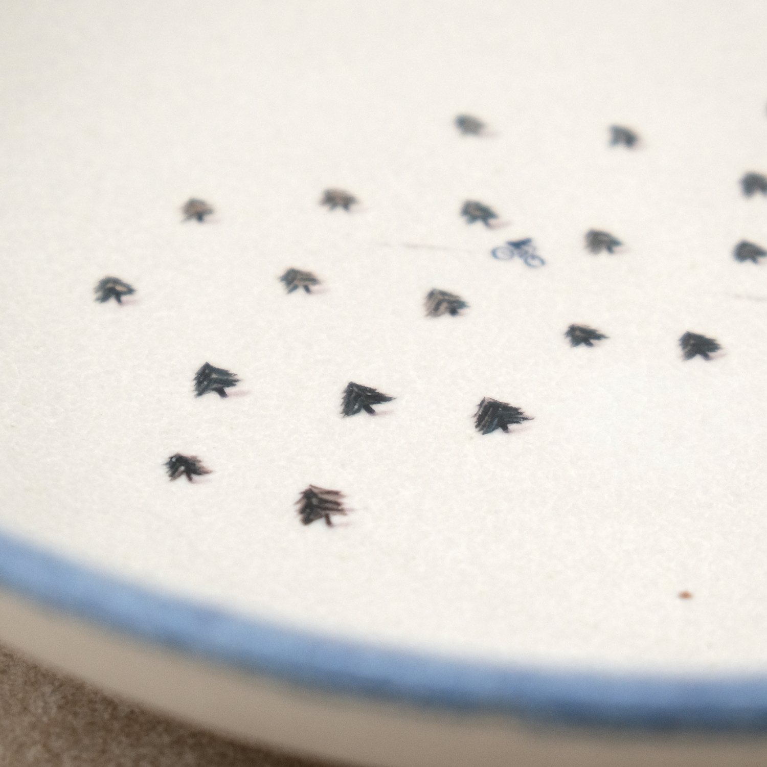 My forest bike ride illustration was reproduced as a decal and fired on to the glazed surface.