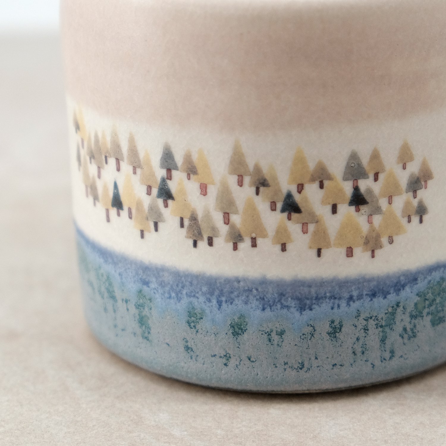 My forest illustration was reproduced as a decal and fired on to the glazed surface.