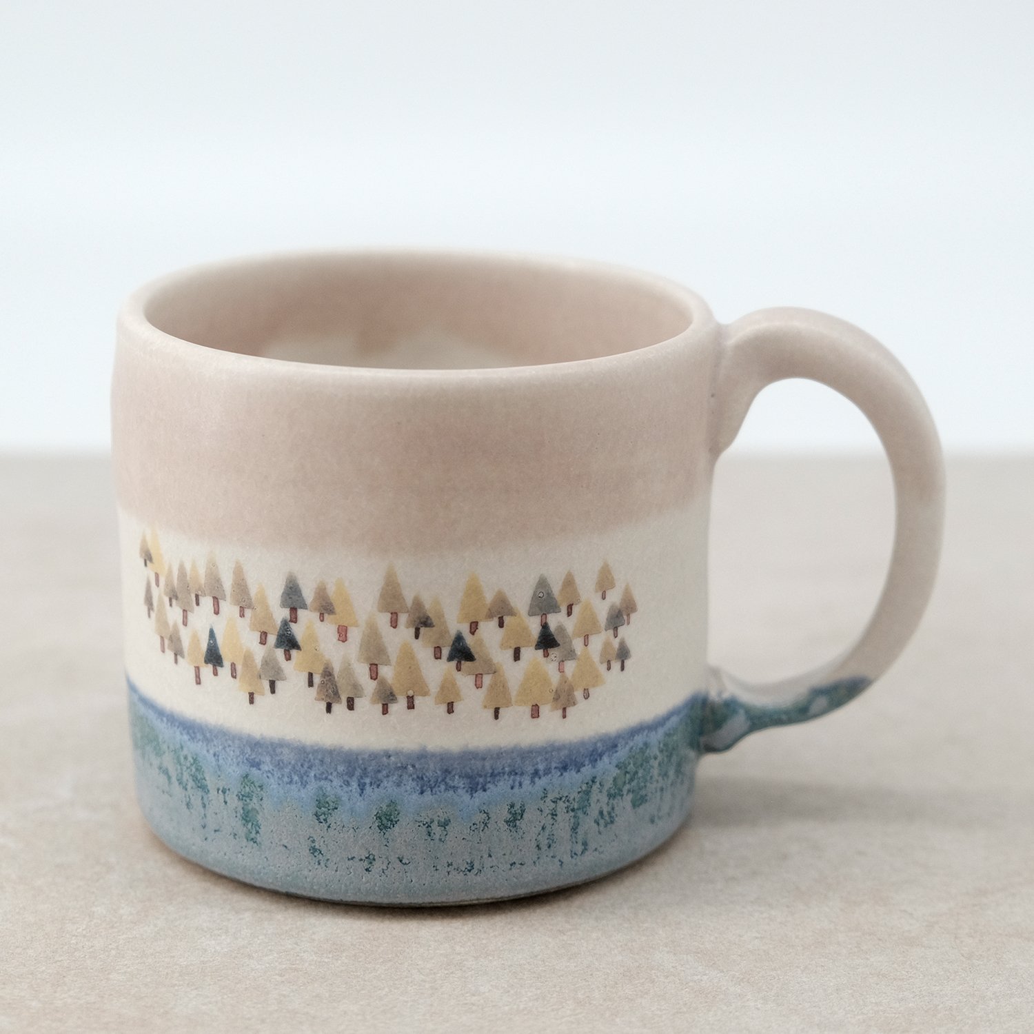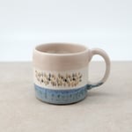 A simple mug, with a layered glaze finish and hand drawn decal print. Perfect for everyday cuppas. Please see dimensions below.