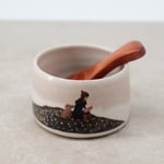Each little bowl is individually thrown from vitrified stoneware and double dipped in stony white and blue toned glazes.