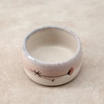 Each bowl is individually thrown from stoneware clay, decorated in blue, white and pink toned glazes.