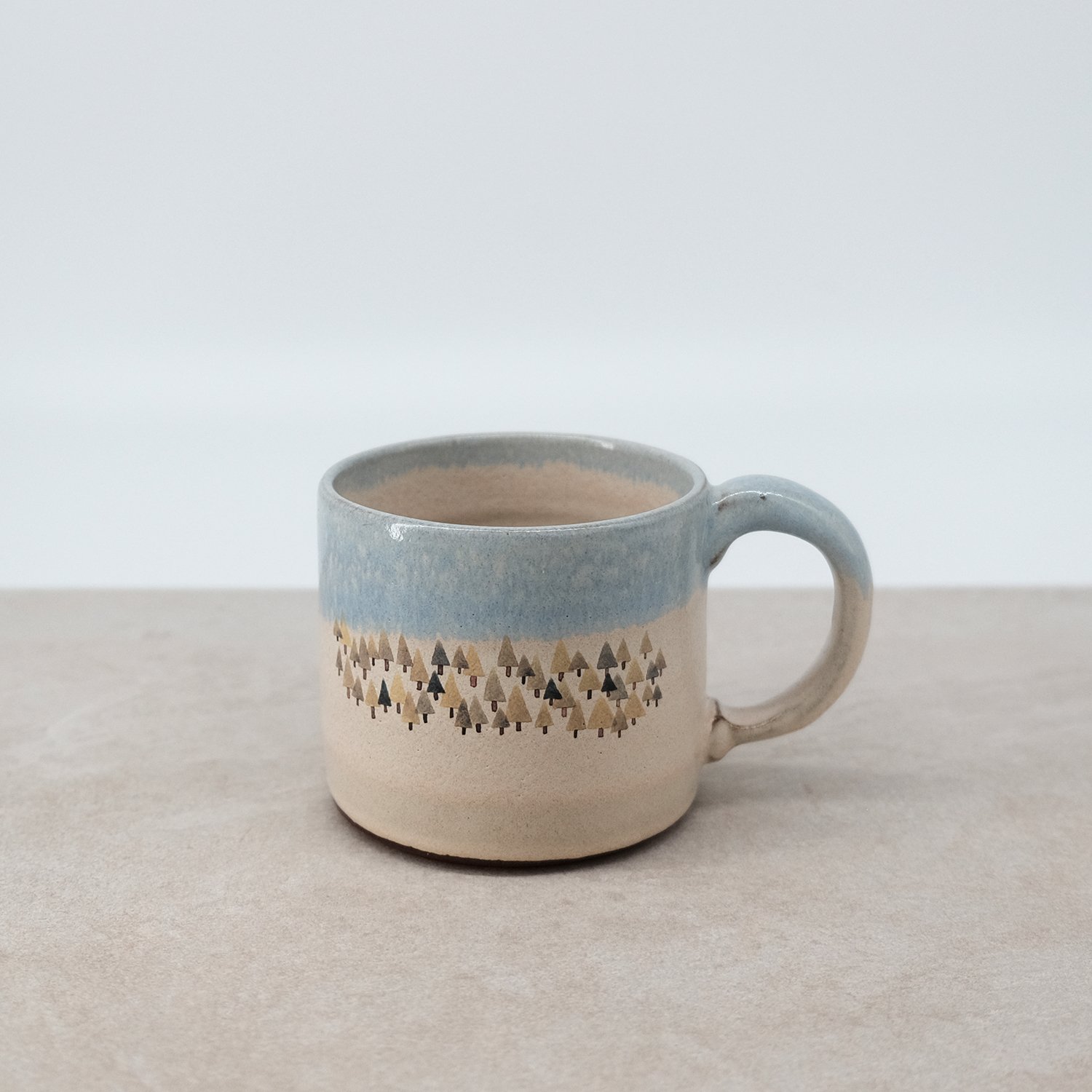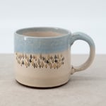 A simple mug, with a layered glaze finish and hand drawn decal print. Perfect for everyday cuppas.