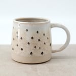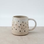 A simple, medium sized mug finished with soft layered glazes and a hand-drawn decal illustration.
