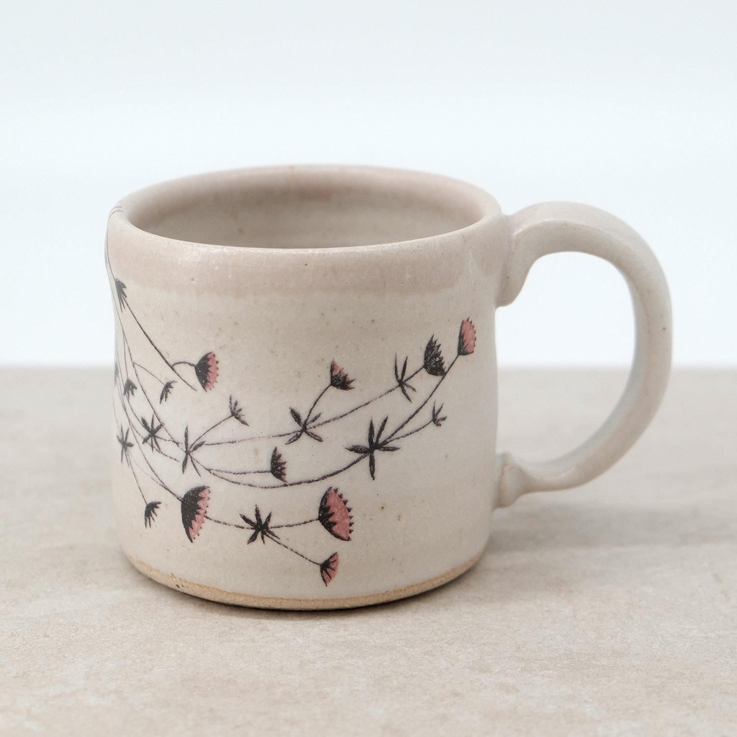A simple mug, with a layered glaze finish and hand drawn decal print. Perfect for everyday cuppas. Please see dimensions below.