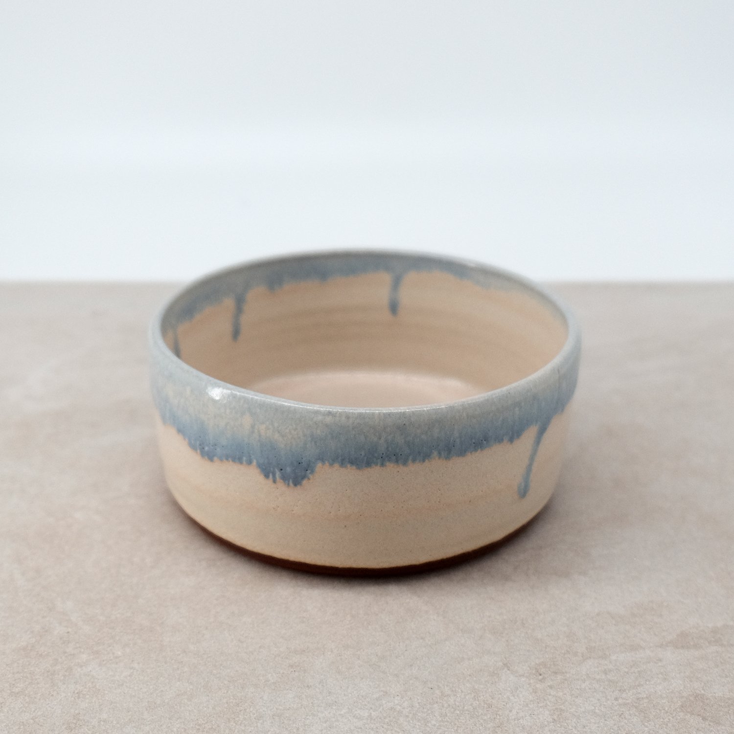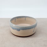 Individually thrown and hand modelled from vitrified earthenware and double dipped in blue and tan toned glazes.