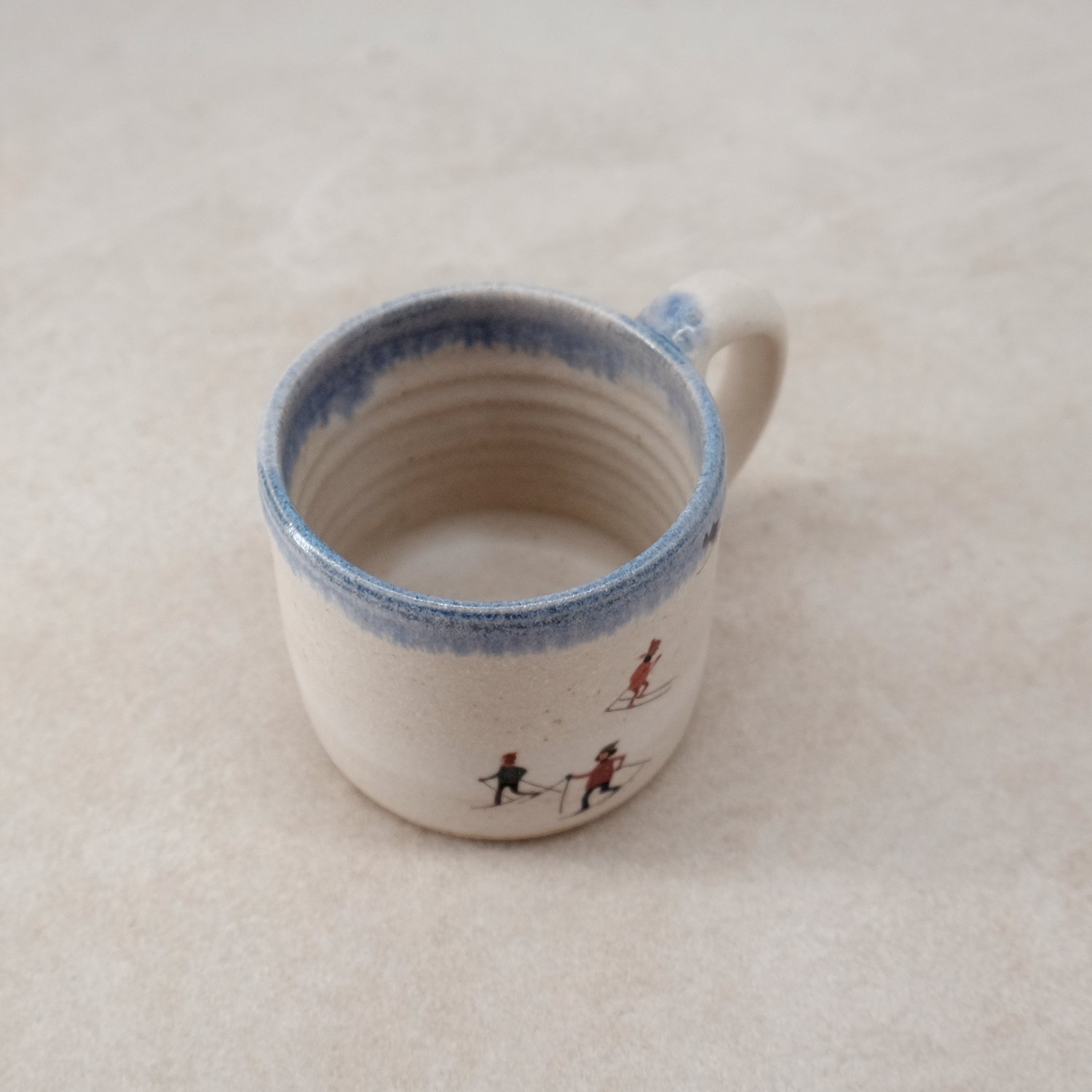 My Skiiers illustration was reproduced as a decal and fired on to the glazed surface.