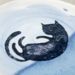 My black cat illustration was reproduced as a decal and fired on to the glazed surface.