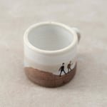 A simple, little espresso cup finished with soft layered glazes and a hand-drawn decal illustration.