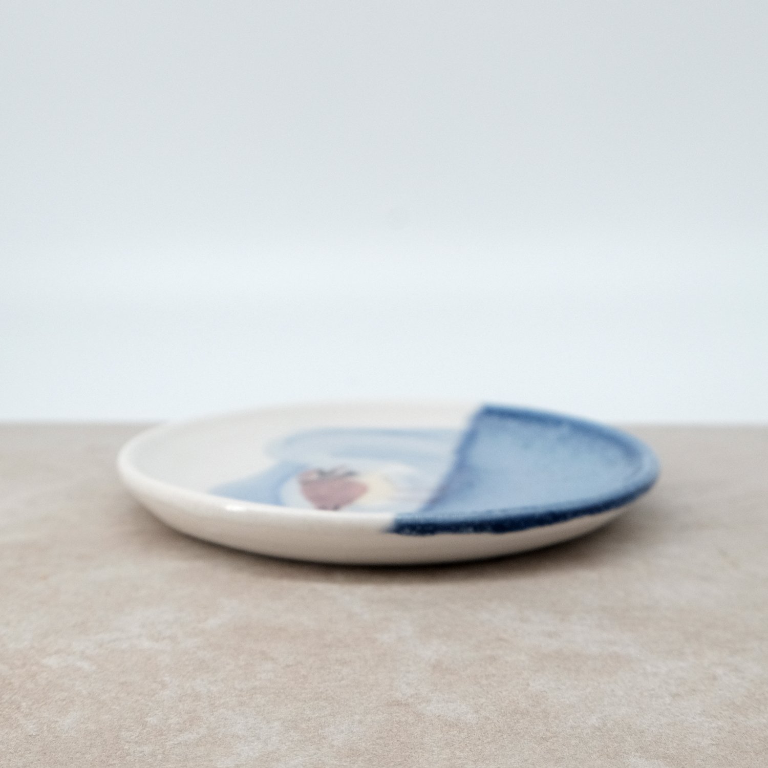 A simple little plate, with a layered glaze finish and hand drawn decal print. A versatile plate for the kitchen. Please see dimensions below.