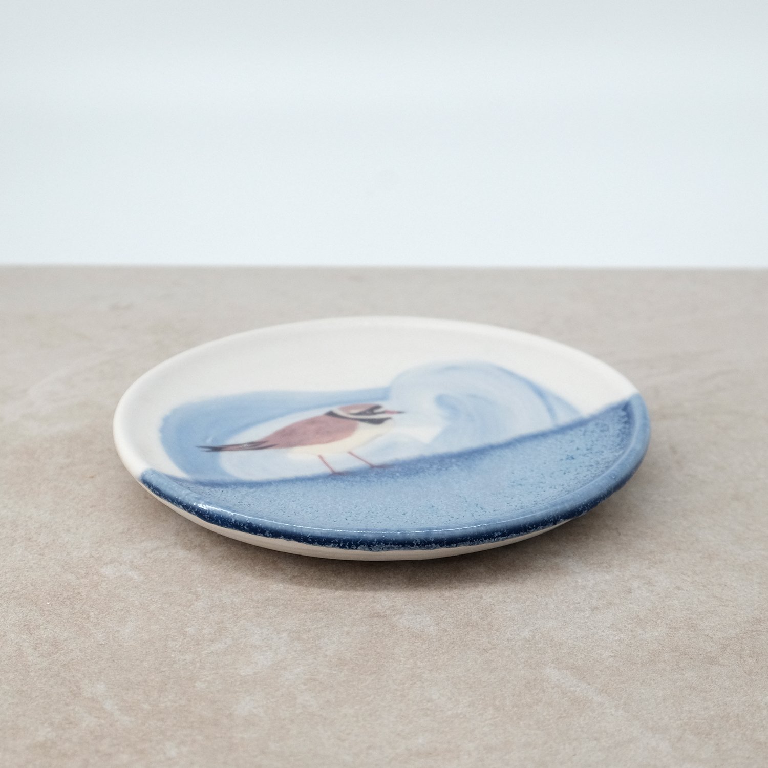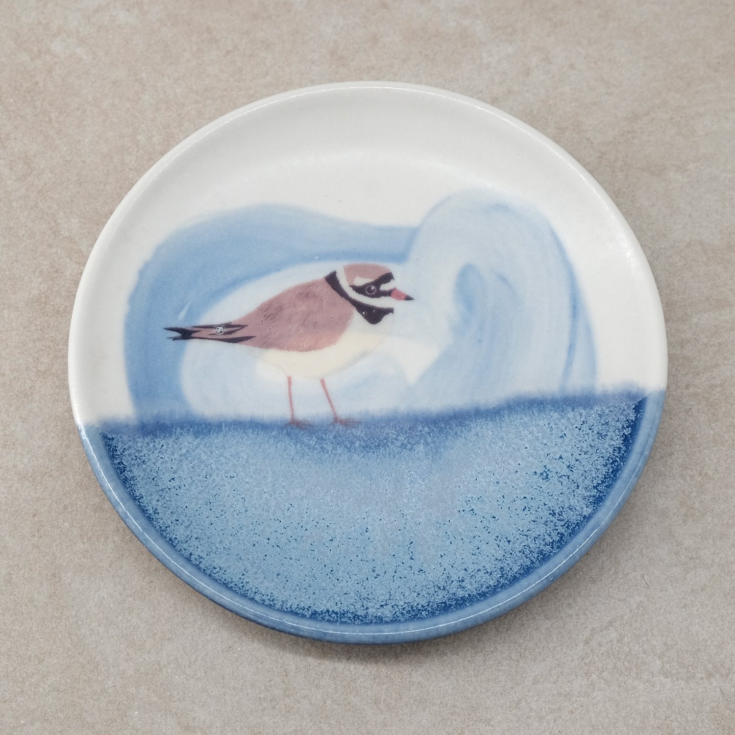 My plover illustration was reproduced as a decal and fired on to the glazed surface.