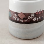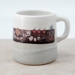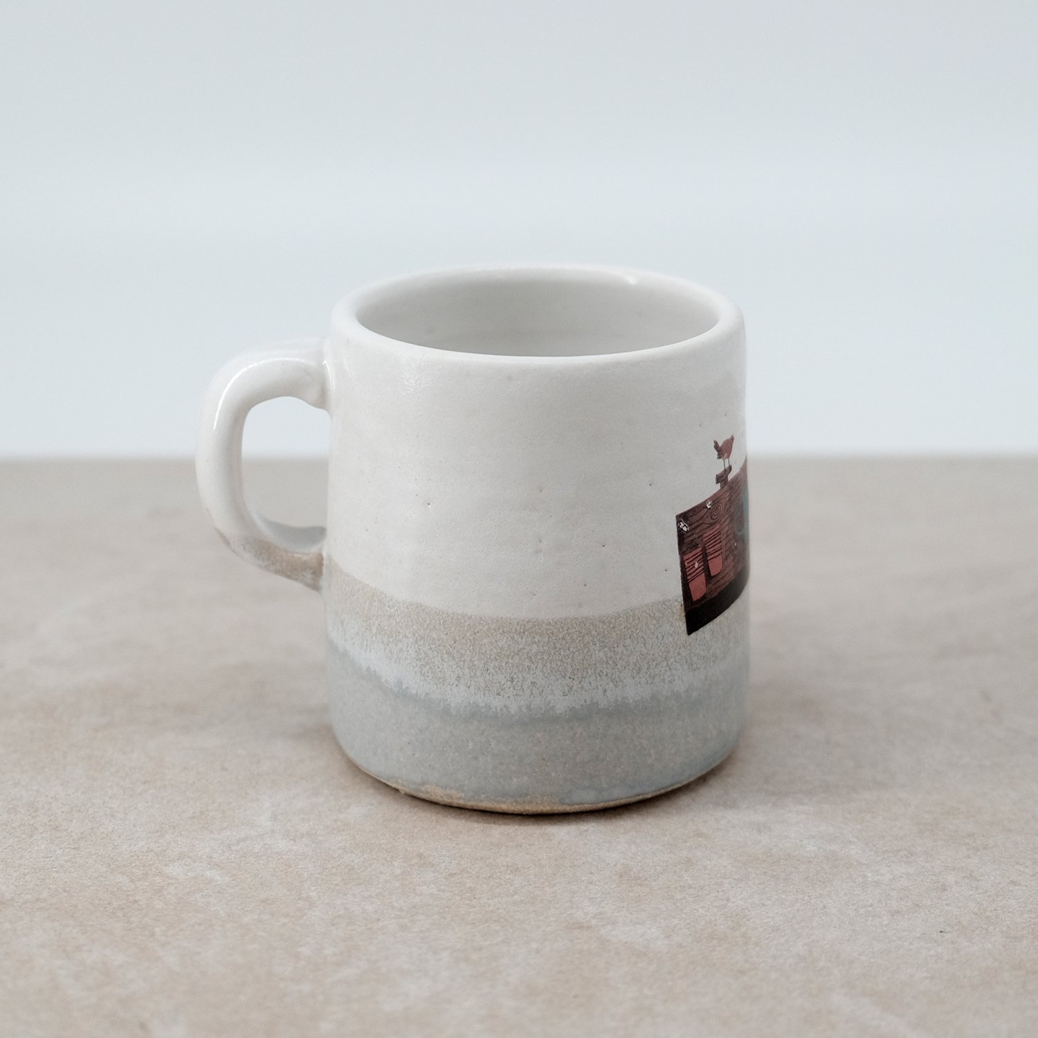 A simple, little mug finished with soft layered glazes and a hand-drawn decal illustration.