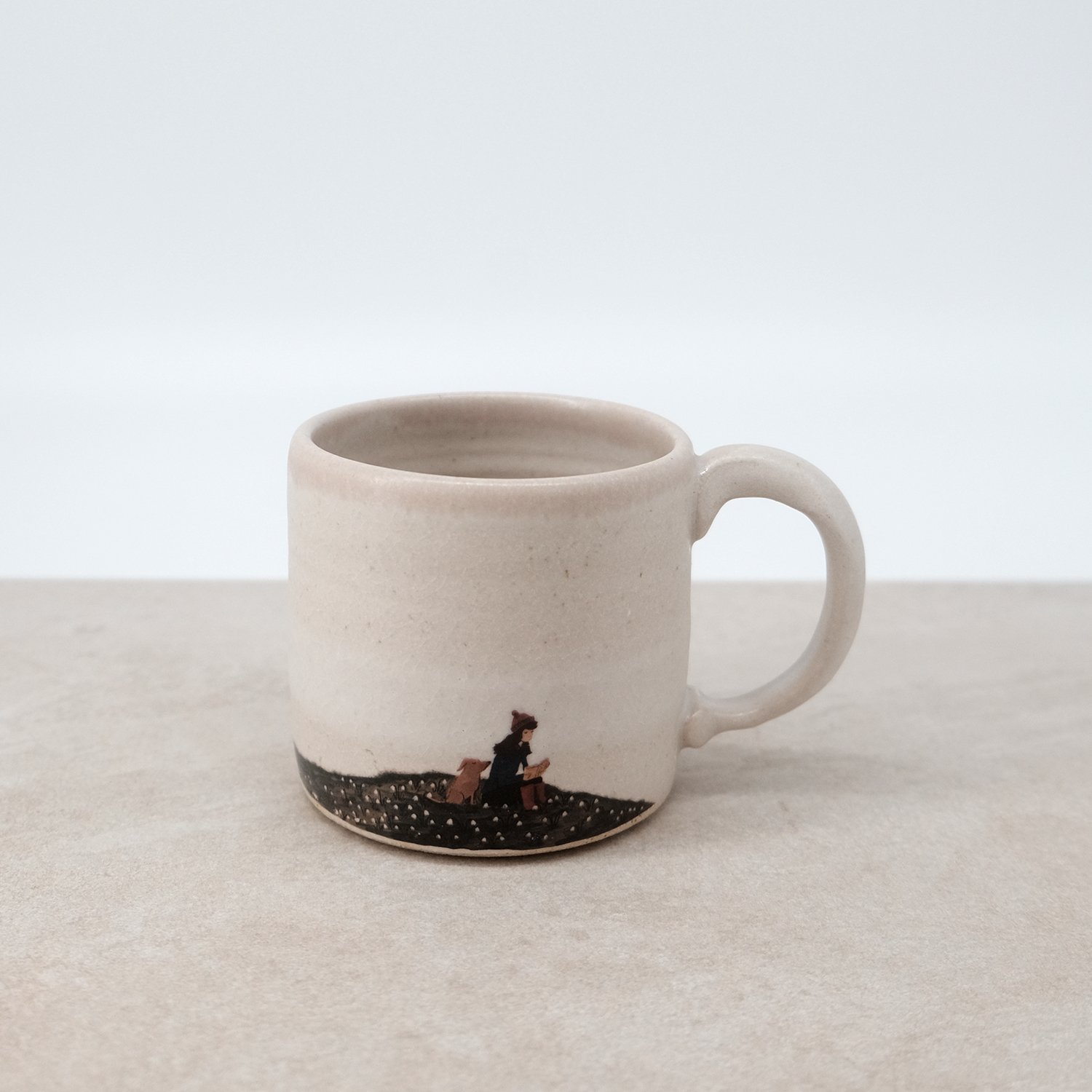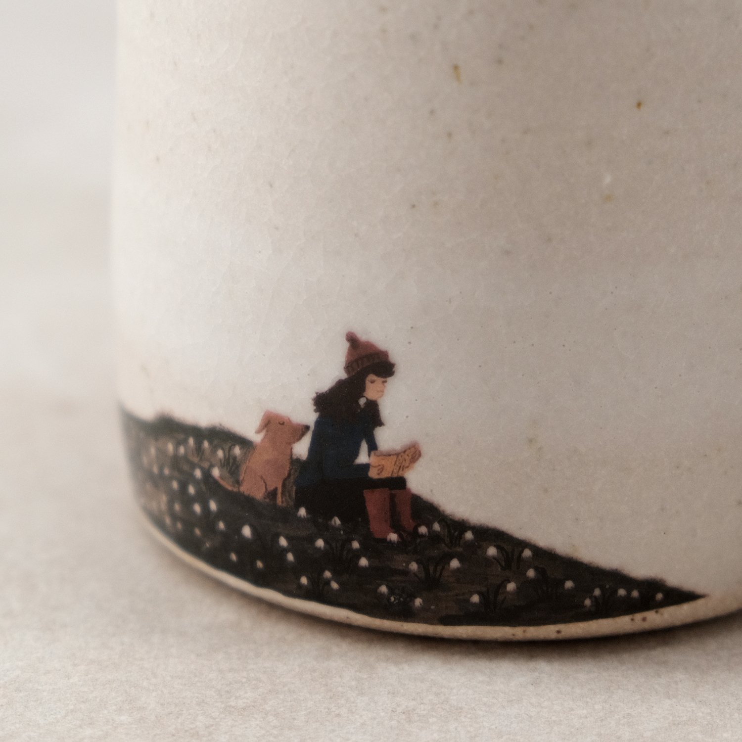 A simple mug, with a layered glaze finish and hand drawn decal print. Perfect for everyday cuppas. Please see dimensions below.