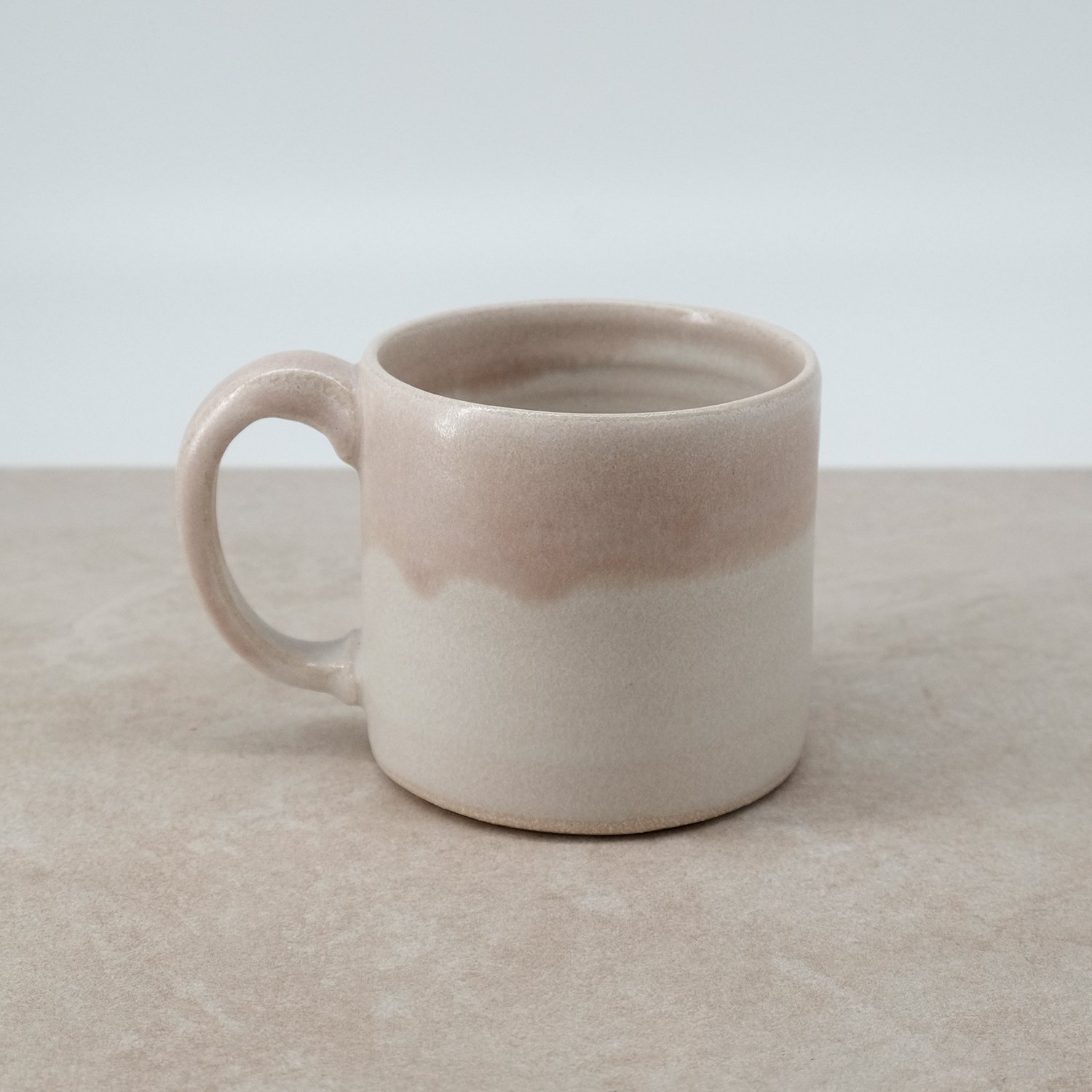 Individually thrown and hand modelled from vitrified stoneware clay and double dipped in stony white and pink toned glazes.