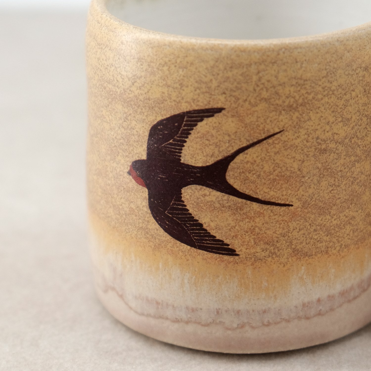 My swallow illustration was reproduced as a decal and fired on to the glazed surface.
