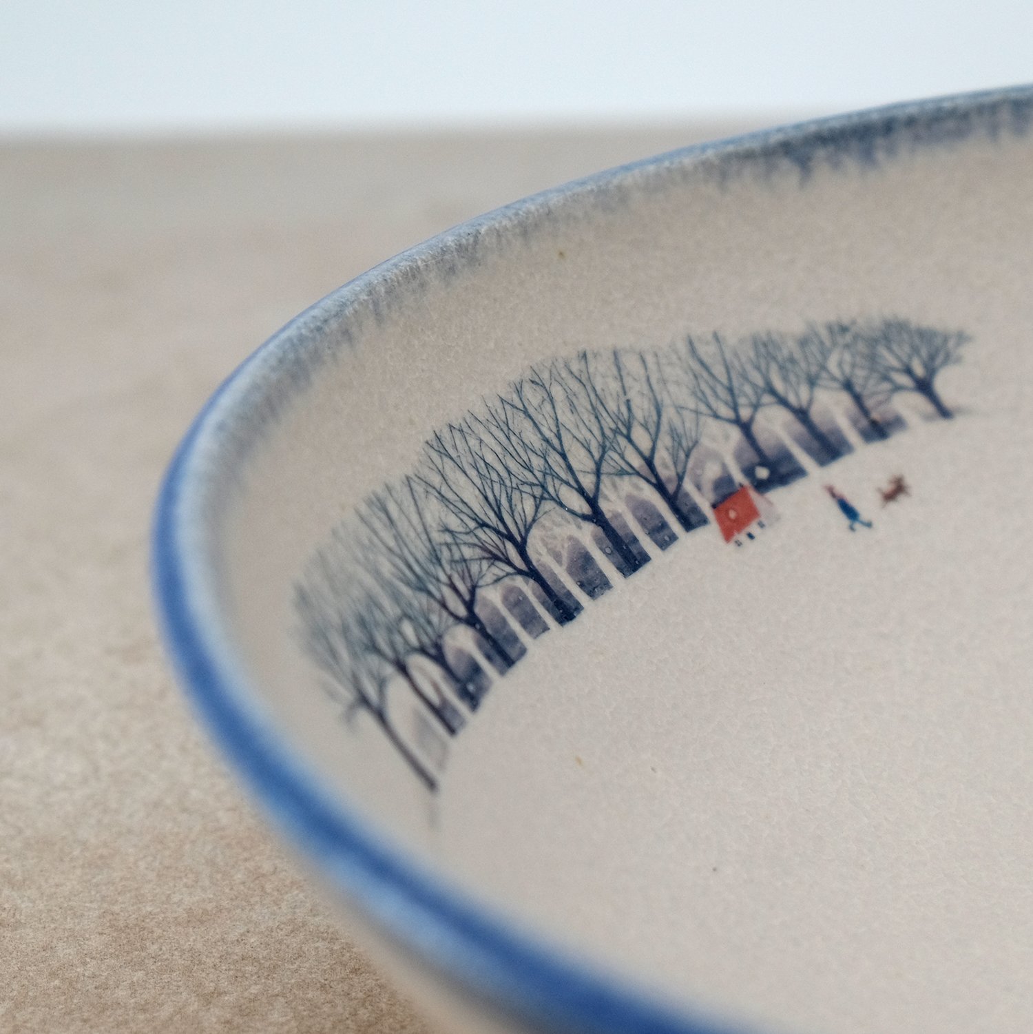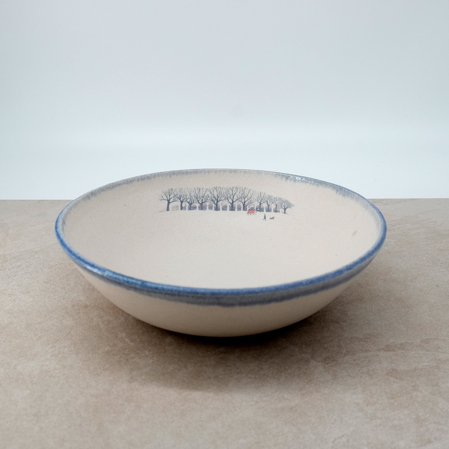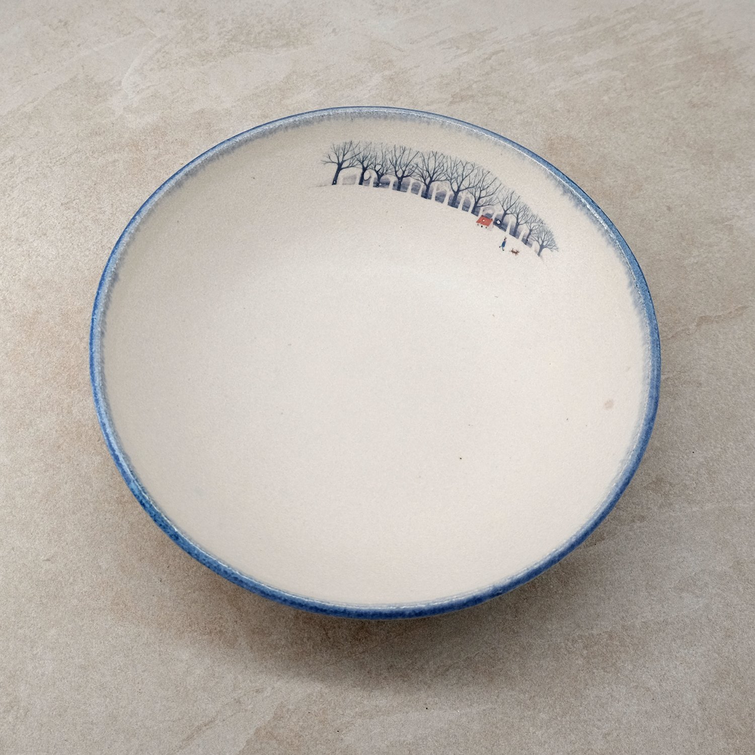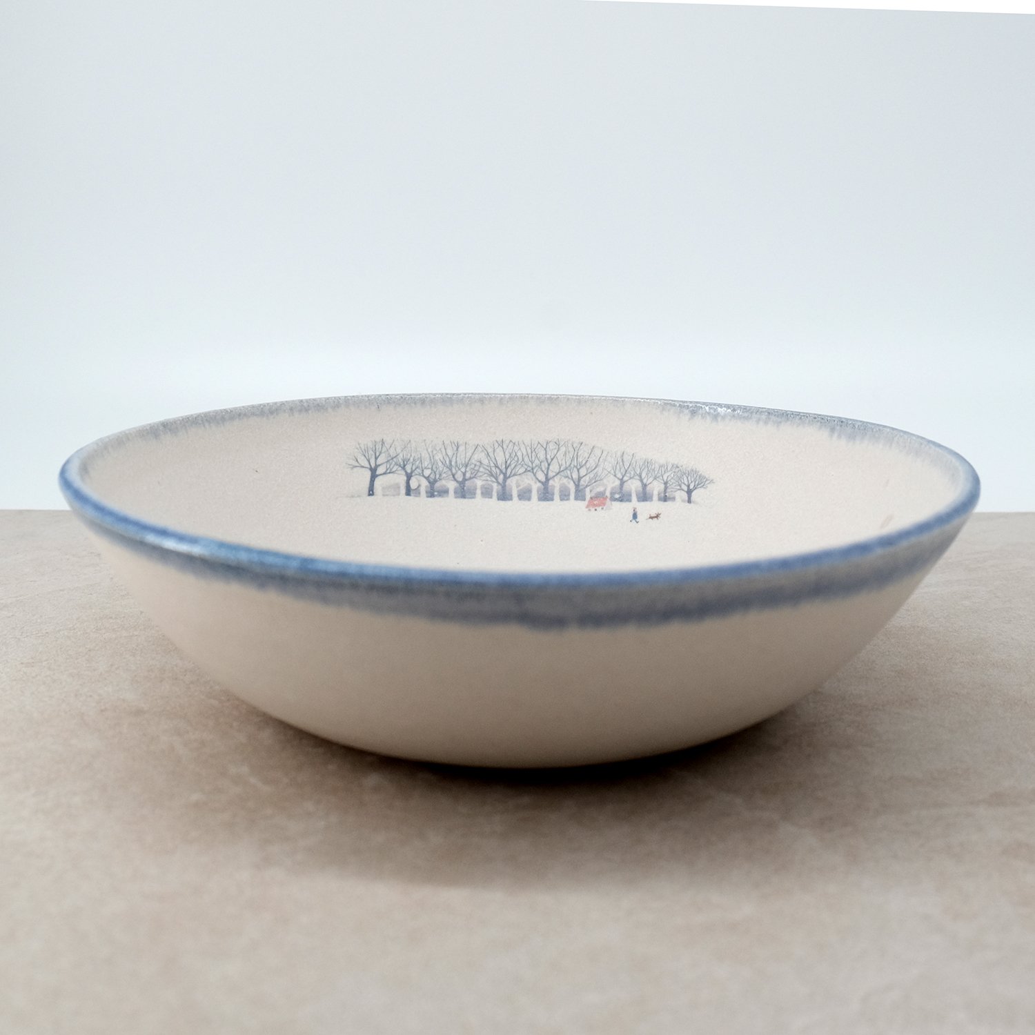 My winter walk illustration was reproduced as a decal and fired on to the glazed surface.